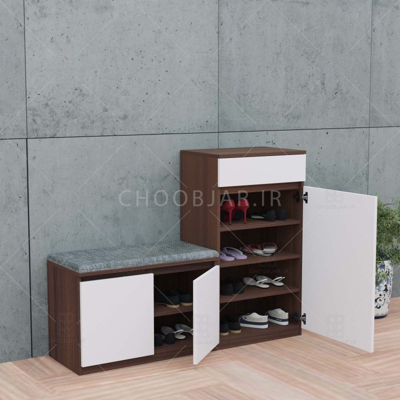 - دارای 6 طبقه جای کفش که 2 طبقه همراه با نشیمن و 4 طبقه به همراه کشو است