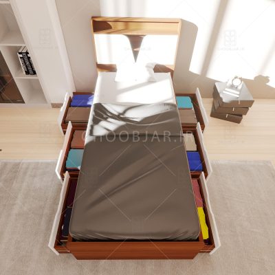 - دارای 2 قسمت رویه کوبی شده با پارچه و فوم روی تاج تخت و قسمت جلوی تخت جهت تکیه گاه راحتی