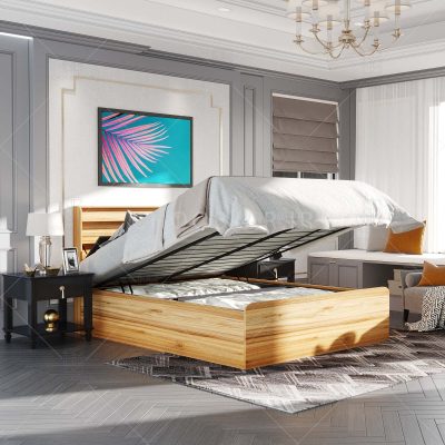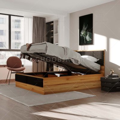 - جکدار: تختهای جکدار، به مکانیزمی مجهز هستند که به راحتی به فضای زیر تخت دسترسی میدهد. این فضا برای نگهداری ملحفه، پتوهای اضافه، و یا سایر وسایل مناسب است. سیستم جکها میتواند دستی یا برقی باشد.