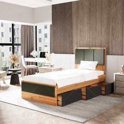 - دارای 2 قسمت رویه کوبی شده با پارچه و فوم روی تاج تخت و قسمت جلوی تخت جهت تکیه گاه راحتی
