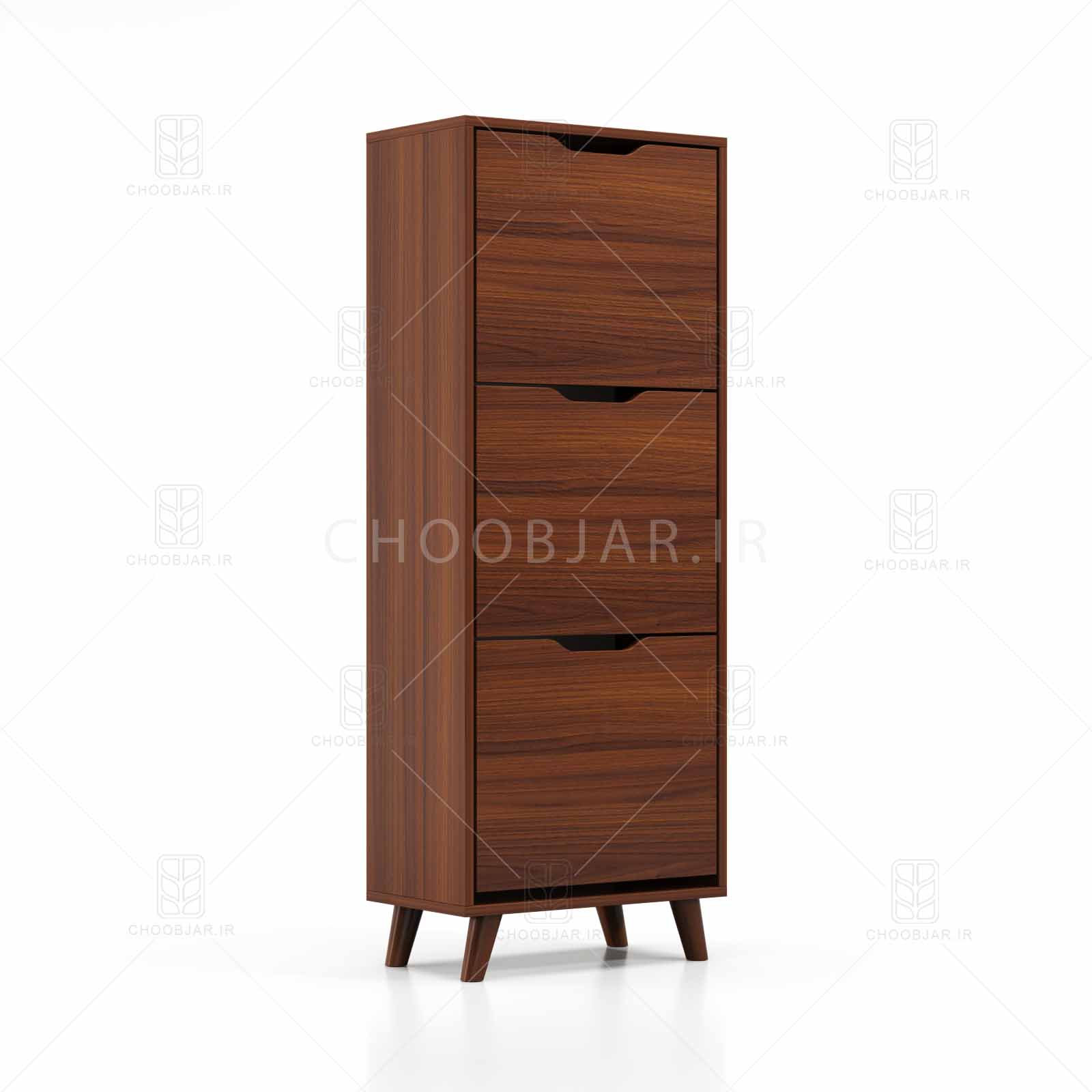 جاکفشی داشبوردی 3 درب عمودی دستگیره منحنی برای مشتریانی طراحی شده که فضای بیشتری برای نگهداری مناسب کفش لازم دارند. این جاکفشی با طراحی مناسب می تواند 12 جفت کفش را به بهترین نحو نگهداری کند و برای فضای کنار درب ورودی ساختمان مناسب می باشد.نحوه بازشدن درب ها به صورت داشبوردی بوده و کفش ها به صورت عمودی در داخل دربها قرار می گیرد.جاکفشی های داشبوردی در سه رنگ سفید، فندقی و گردویی تولید می شود. جنس این جاکفشی از ورق ملامینه ضد خش و تمامی اتصالات الیت ترک می باشد.درصورت برداشتن طبقه جداکننده می توان کفش های ساق بلند مانند بوت را به راحتی داخل طبقات قرار داد.پایه های جاکفشی از جنس چوب بوده و در صورت تمایل میتوانید آنها را از جاکفشی جدا کنید.