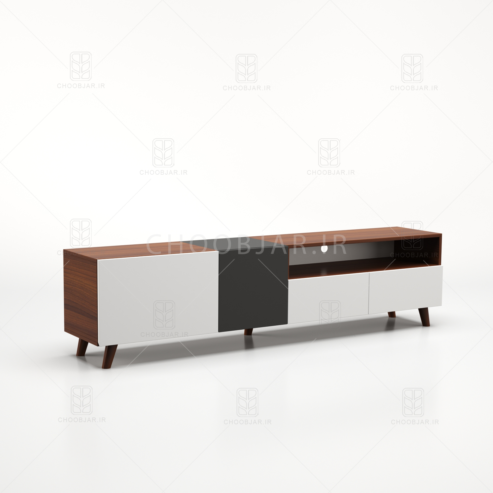 - دارای 2 عدد کشو و 2 عدد طبقه درب دار برای قرارگیری وسایل جانبی نلویزیون یا سایر ابزار دلخواه