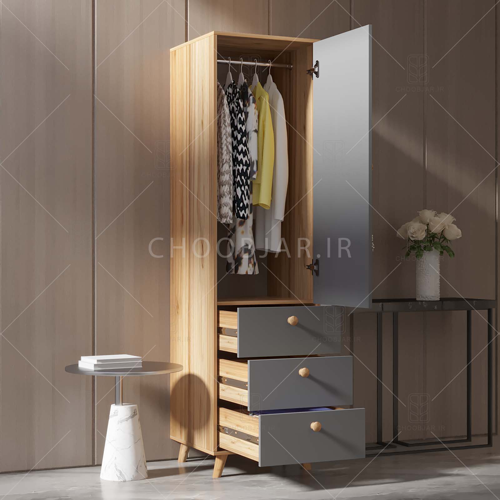 - دارای یک طبقه به همراه رگال فلزی برای قرارگیری آویز لباس